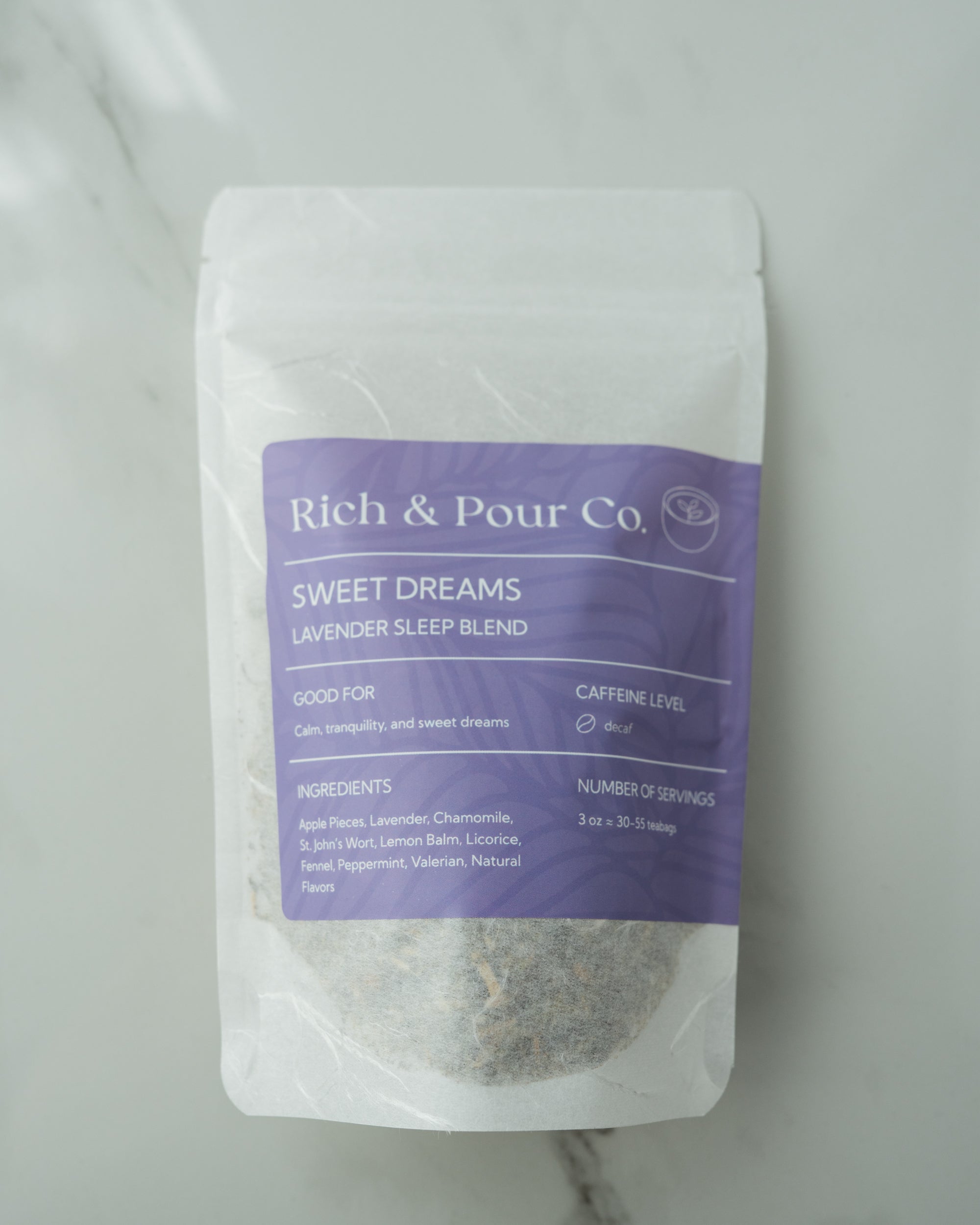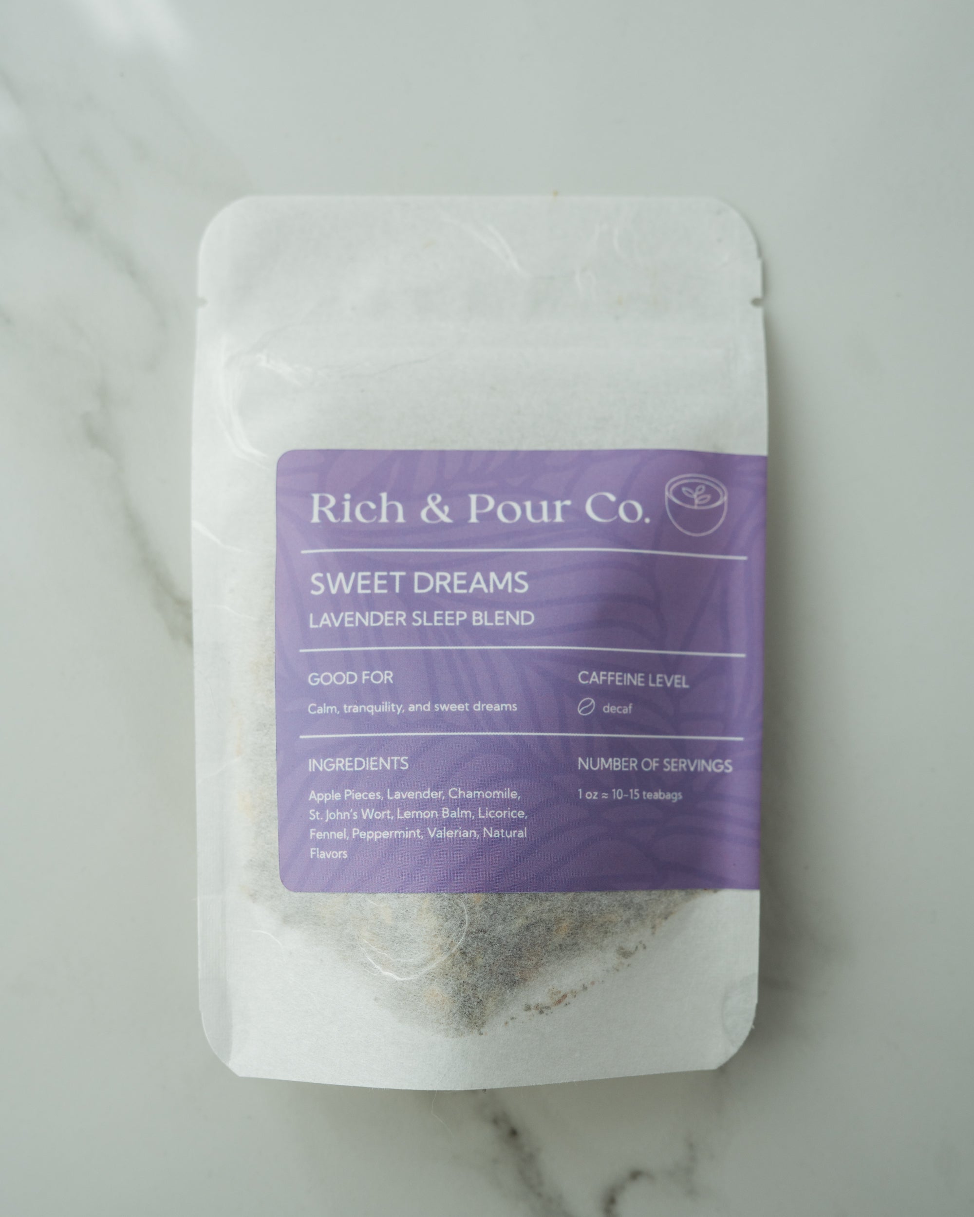 Full Ingredients List: Apple Pieces, Lavender, Chamomile, St. John’s Wort, Lemon Balm, Licorice, Fennel, Peppermint, Valerian, Natural Flavors.
